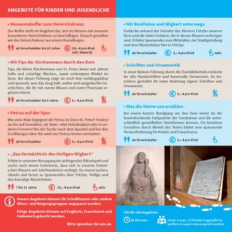 Geplant ist, dass jetzt auch die gedruckten Flyer für das umfangreiche Angebot an Führungen vorliegen. Falls noch nicht - hier die Flyer für Erwachsene und Kinder zum Sichten und zum Download