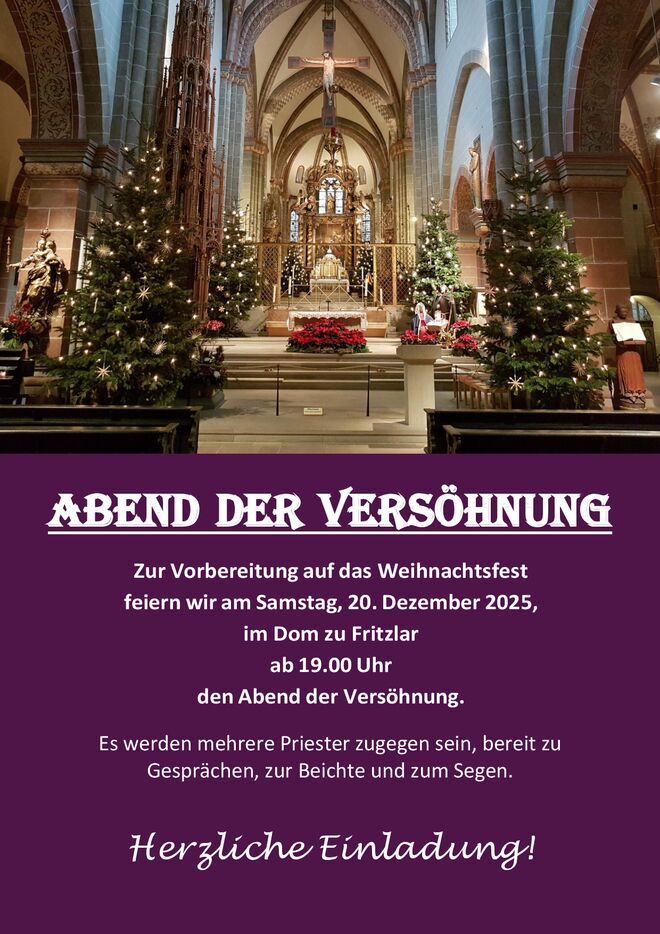 Dom dienstags von 17.30 Uhr -18.15 Uhr (letzte Beichtmöglichkeit um 18.05 Uhr)