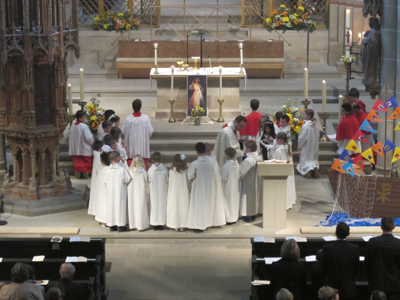 Weißer Sonntag - Sonntag der göttlichen Barmherzigkeit - und Tag der Heiligsprechung zweier Päpste. Zeitgleich zu unserem Erstkommuniongottesdienst spricht Papst Franziskus in Rom Papst Johannes XXIII. und Papst Johannes Paul II. heilig, der unseren Dom zu Fritzlar vor 10 Jahren zu einer Päpstlichen Basilica minor erhoben hat.