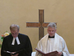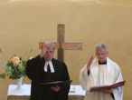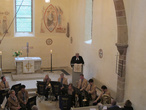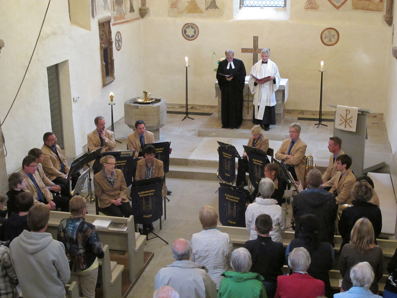 Auch in diesem Jahr fand wieder ein ökumenischer Gottesdienst am Johannistag statt. Dekan Umbach und Dechant Schütz feierten den Gottesdienst mit uns, Bezirkskantor Volgmann an der Orgel und der Katholische Bläserchor sorgten für die Musik. Es wurde gebetet und bekannte Liedmelodien mit neuen Texten gesungen.