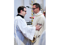 Am Anfang des Gottesdienstes hatte der Bischof bereits hervorgehoben, dass Berufung wesentlich durch Beziehung entstehe, und die Familienangehörigen, Freunde und Gläubigen begrüßt, die mit Kai Scheffler gemeinsam im Glauben unterwegs seien. Zu Beginn seiner Predigt erinnerte Gerber dann daran, dass sich schon zu Jesu Zeit auf Erden Menschen von ihm abgewandt hätten, andere aber bei ihm geblieben seien, denn „Du hast Worte des ewigen Lebens“. Die Erfahrungen, die sie mit ihm gemacht hätten, seien tragend gewesen. So müsse sich die Kirche auch heute fragen, wie es gelingen könne, Menschen in eine tiefere Beziehung zu Jesus Christus zu führen. Der Bischof nahm sodann auf den Berufungsweg des Kandidaten Bezug, der von der Messdienerzeit über einen Glaubenskurs in Hünfeld über die Assoziierten der Oblaten hin ins Priesterseminar Fulda geführt hatte.