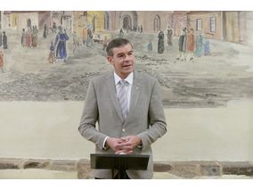 Auch Bürgermeister Hartmut Spogat freute sich in seinem Grußwort sehr über die Qualität des Dommuseums und erinnerte mit einer Ingwerwurzel in der Hand an unsere Wurzeln in Kirche und Stadt.