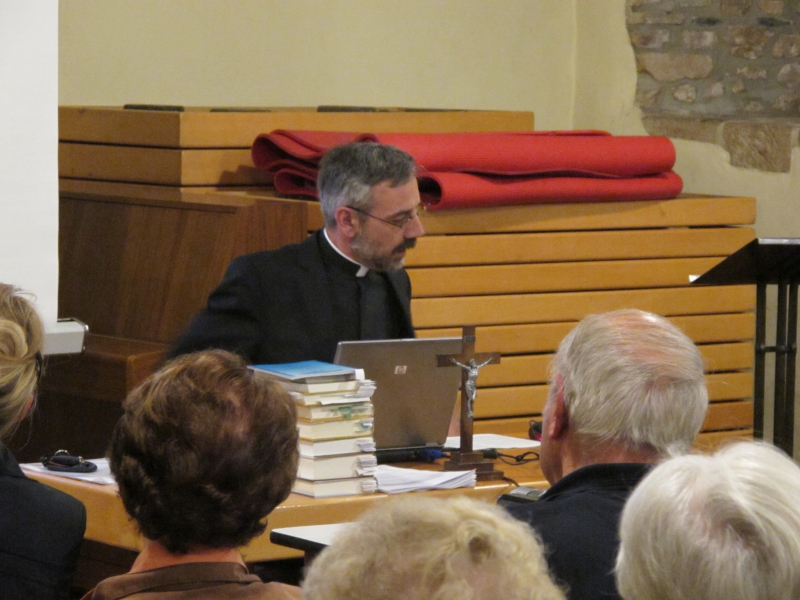 Kaplan Kämpf und Militärpfarrer Patton referierten über das Thema „Kirche und Kirchen – die Kirche Jesu Christi und die verschiedenen Konfessionen“. Zur Sprache kam das Selbstverständnis der katholischen Kirche als Volk Gottes und Leib Christi. Ein starker Akzent wurde auf die innere, geistliche Dimension der Kirche gelegt, da Kirche mehr ist als die Summe ihrer Glieder und mehr als ihr äußeres Kleid, um so den Blick von den derzeitigen Struktur- und Organisationsdebatten auf das Wesentliche der Kirche zu lenken. Denn „institutionell Reformen ohne innere Erneuerung sind seelenlos und am Ende wert- und folgenlos“, so Kardinal Walter Kapser.