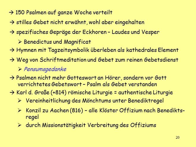 Zwar ohne die umfangreichen Erläuterungen des Referenten, aber zum Nachlesen bestens geeignet - die Präsentationsfolien, die Kaplan Kämpf an den beiden Vortragsabenden zur Vesper vorgestellt hat.