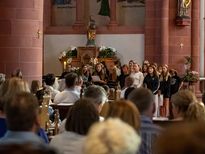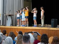 der Bibeln und der Klassenkerzen durch Schulseelsorger Dr. Paul Lang erhielten alle Sextanerinnen und Sextaner einen persönlichen Segen zusammen mit der Heiligen Schrift. Für die musikalische Gestaltung sorgten die Musiklehrer Regina Rohrer und Hartmut Raatz, die durch Bewegungslieder das Mitmachen ermöglichten.
