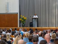 Beim anschließenden Festakt in der vollbesetzen Bonifatiushalle wurden die Kinder und ihre Eltern von Schulleiter Björn Mayr und der pädagogischen Leiterin Ilse Seumer begrüßt. Musikalisch wurde die Aufnahmefeier von der Mini-Band unter der Leitung von Hartmut Raatz sowie der Musikklasse 6d unter der Leitung Amparo Rodrigo Lozano begleitet. Zudem trat eine Projektunterrichtsgruppe der Jahrgangsstufe 6 auf und sorgte mit "Der verhexte Zirkus" für kurzweilige Unterhaltung