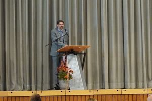 Beim anschließenden Festakt in der vollbesetzen Bonifatiushalle wurden die Kinder und ihre Eltern von Schulleiter Björn Mayr und der pädagogischen Leiterin Ilse Seumer begrüßt. Musikalisch wurde die Aufnahmefeier von der Mini-Band unter der Leitung von Hartmut Raatz umrahmt. Die SchülerInnen der Jahrgangsstufe 6 sorgten mit der Theatereinlage "Spielkinder", die im Projektunterricht von Constanze Eckel einstudiert wurde, für kurzweilige Unterhaltung.
