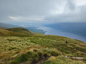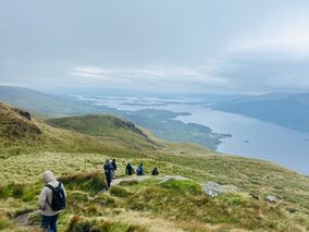 Mit dem Bus fuhren wir in das nördlicher gelegene Luss, wo wir schließlich in eine Fähre umstiegen und quer über den Loch Lomond zu unserer Unterkunft kamen. Von dem großen See und der Landschaft waren wir beeindruckt. Bei der Ankunft trauten sich sogar einige, in das kalte Wasser zu springen. Die Unterkunft am Loch Lomond war ziemlich abseits und ruhig, sodass wir abends nicht wie in Glasgow Pubs oder Bars besuchten, sondern gemeinsam im Wohnzimmer Brettspiele spielten. Hier zeigte sich auch das Wetter von einer authentischen Seite, weshalb unsere Wanderung auf den Ben Lomond von Regen und Wind geprägt war. Trotzdem wagte sich ein Teil der Gruppe hinauf auf den Berg, und auch wenn wir es durch das Wetter nicht bis ganz nach oben schafften, machte die Wanderung eine Menge Spaß.